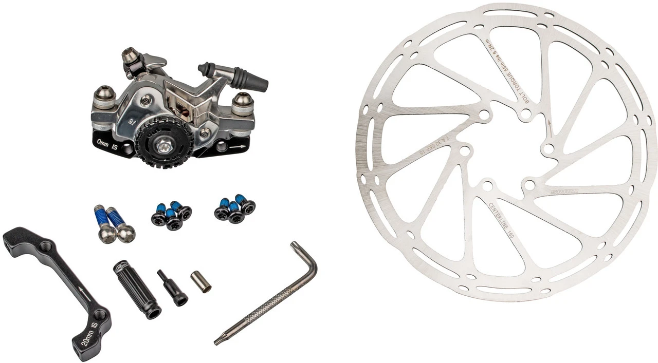 Herstellernummern:140 mm:00.5016.166.100160 mm:00.5016.166.090Lieferumfang:1 x Bremssattel Avid BB7 Road SL1 x Bremsscheibe SRAM Centerline1 x Adapter Avid Postmount auf IS (entsprechend der Scheibengröße)2 x Bremsbelag Avid organic6 x Schraube Avid Torx zur Bremsscheibenmontage2 x Schraube Avid Innensechskant zur Bremssattelmontageohne Bremshebelohne Züge