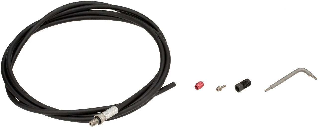 Das Bremsleitungsset von Avid besteht aus einer Hydraulik-Bremsleitung samt Anschlussgewinde und Dichtung mit einer Länge von 2000 mm, passenden Fittingen, Oliven und Insertpins. Die Leitung ist mit verschiedenen Überzügen erhältlich und reicht zur Verwendung an einer Bremse (Vorder- oder Hinterrad).