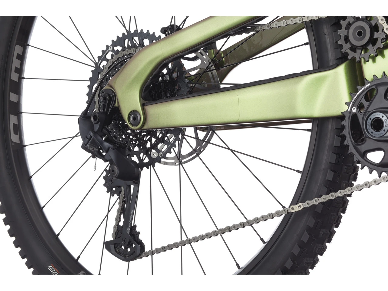 Das Cannondale Jekyll 1 29″ Mountainbike aus Carbon ist ein abfahrtsorientiertes Enduro-Fully mit SRAM Antrieb und Fox Federelementen, welches mit einigen technischen Finessen aufwartet. Ins Auge springen vor allem die Gravity Cavity, welche den Dämpfer für einen niedrigen Schwerpunkt im Unterrohr versteckt, und der Guidler oberhalb des Kettenblatts, eine Kombination aus Umlenkrolle und Kettenführung. Dieser verhindert den Kettenabwurf und den Pedalrückschlag beim Einfedern, der aus dem höhergelegenen Hauptdrehpunkt resultiert. Der Hauptdrehpunkt befindet sich nicht wie üblich in Innenlagernähe, sondern deutlich darüber. Dies hat einen rückwärtsgerichteten Achsweg zur Folge, was wiederum bewirkt, dass der Hinterbau sehr sanft und flüssig über Hindernisse gleitet, ohne Dich auszubremsen. Dank Proportional Response ist das Rahmendesign von Geometrie über Kettenstrebenlänge bis hin zur Kinematik auf jede Rahmengröße einzeln abgestimmt. Doch damit nicht genug: Der Hinterbau mit Ai Offset bietet große Reifenfreiheit bei eher kurzen Kettenstreben und ein steifes Hinterrad durch gleichmäßige Einspeichung. Das Ergebnis ist ein Bike mit herausragender Effizienz, starkem Grip, hoher Laufruhe und Agilität, welches Lust auf die nächste Abfahrt macht.