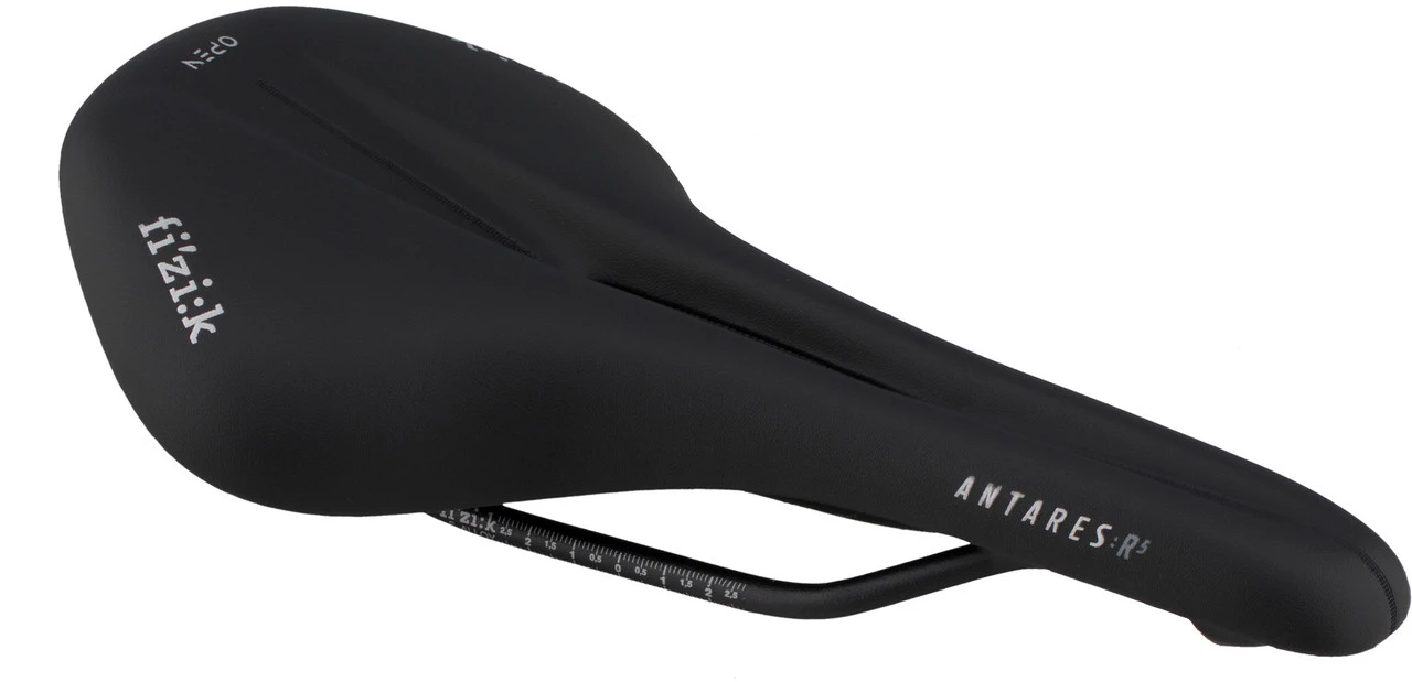Der Antares R5 Open Sattel von Fizik ist ein flacher Rennradsattel, der durch einen Ausschnitt in der Mitte das Weichgewebe entlastet. Dank der korrosionsbeständigen Streben und des Bezugs aus widerstandsfähigem Microtex ist der Sattel besonders langlebig.