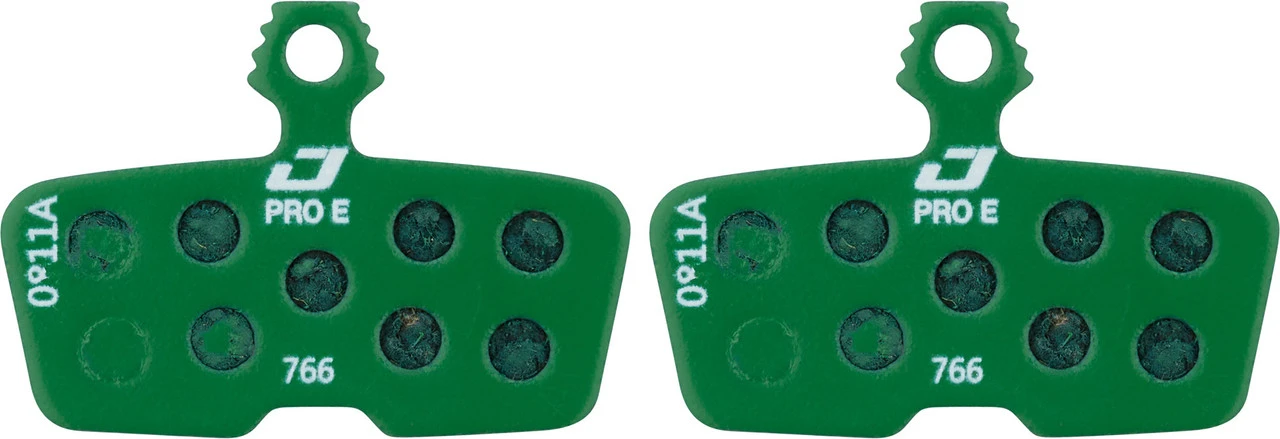 Die Pro E-Bike Bremsbeläge von Jagwire sind mit verschiedenen Scheibenbremsen von SRAM kompatibel und eignen sich aufgrund ihrer langen Haltbarkeit und starken Bremskraft besonders für Elektrofahrräder.