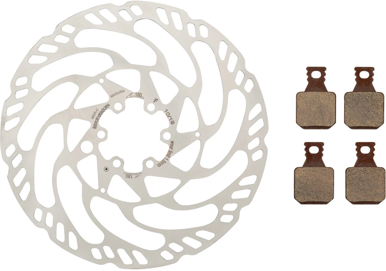 Das MDR-C Bremsscheiben und Belag Kit 6-Loch 180 mm von Magura – Bremsbeläge direkt dabei