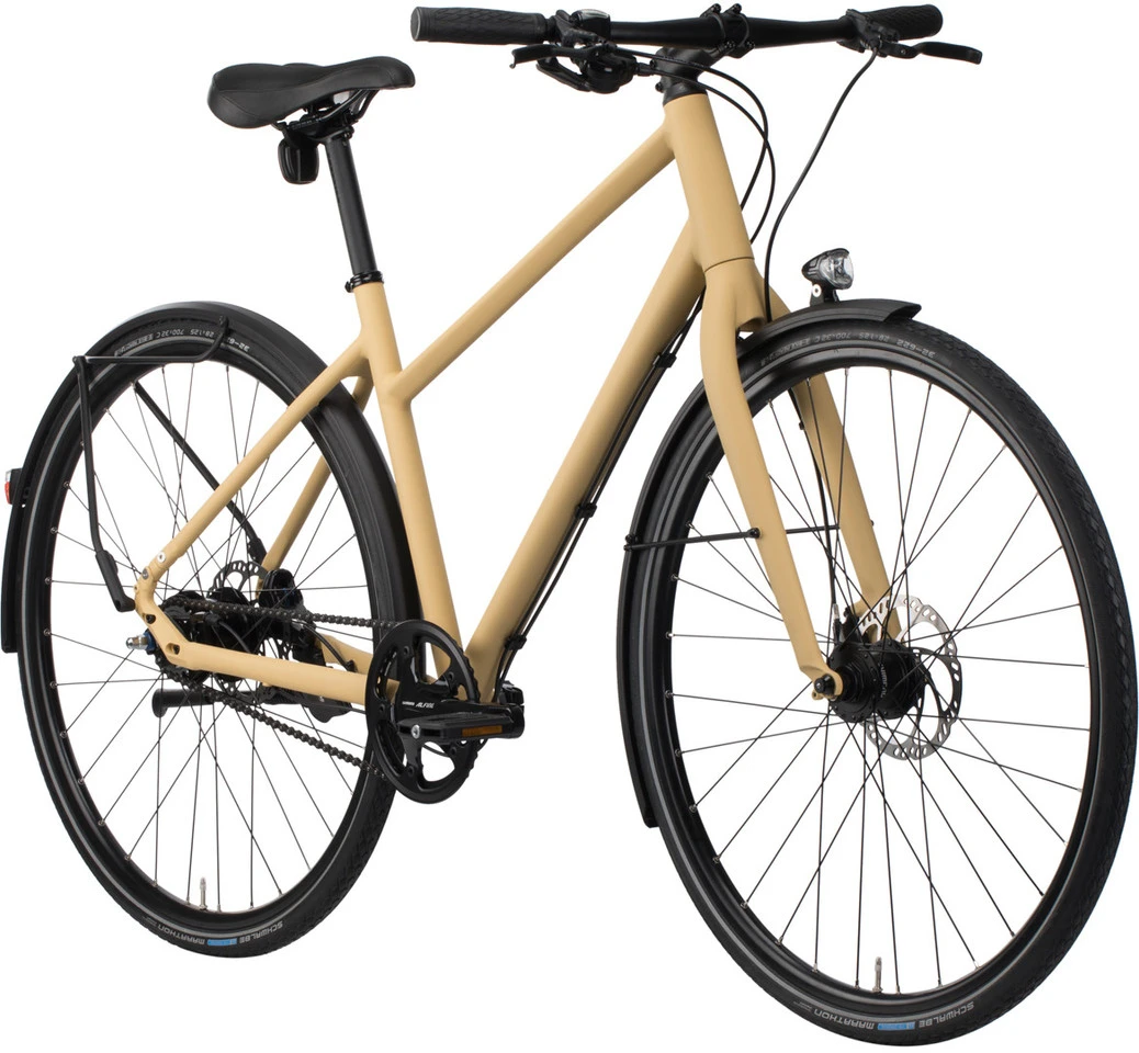 Spezifikationen:Einsatzbereich:City, Touring & TrekkingLaufradgröße:28″Größen:XS, SMaterial Rahmen:Aluminium (6061)Material Gabel:Aluminium (6061)Komponenten:Rahmen:Vortrieb Modell 1 DamenGabel:Vortrieb Modell 1 Straight StarrgabelVorbau:Vortrieb Modell 1 31,8 x 6°Lenker:Vortrieb Modell 1 Flat 660 mm x 16°Lenkergriffe:Vortrieb CampusSteuersatz:Acros AiX-330 Fiber, IS41/28,6-IS41/30Sattelstütze:Vortrieb Modell 1 27,2 x 400 mmSattel:Vortrieb CampusKurbel:Shimano Alfine FC-S501 (42 Z)Pedale:Vortrieb Urban Grip mit Grip TapeBremsen/Bremshebel:Magura MT4N Carbotecture Scheibenbremsen, 2-Kolben, 4-Finger, mit Storm HC Rotoren 160 mmSchalthebel:Shimano Alfine SL-503 8-GangAntrieb:Vortrieb Campus (20 Z)Schutzbleche:Hebie Wingee Aluminium mit TaschenstrebenScheinwerfer:busch+müller Lumotec IQ2 Eyc NRücklicht:Herrmans H-Trace miniParkstütze:Hebie 661 für KSA40 HinterbaubefestigungFelgen:Vortrieb Urban TourSpeichen:VortriebVorderradnabe:Shimano H-T4050-1D NabendynamoHinterradnabe:Shimano Alfine SG-S7001 8-GangReifen:Schwalbe Marathon Performance GreenGuardFreigaben:Gewichtsbeschränkung:130 kg GesamtgewichtBremsscheibengröße max.:160 mm hinten, 180 mm vorneReifengröße max.:32-622Features:hochwertigste Rahmenverarbeitung: verschliffene Schweißnähte für cleanes, zeitloses Design; umweltfreundliche, robuste Pulverbeschichtung für edles Finishzuverlässig: Alfine 8 Gang Nabenschaltung ist bewährt und leiseAusstattung vom Feinsten: Beleuchtung von busch+müller, Scheibenbremsen von Maguraselbst versteckte Details wie die Acros Lager entstammen dem High-End Regalsportive Fahreigenschaften: antrittssteif und wendigDesignanspruch mit Nutzwert vereint: Wingee Schutzblech-/Trägersystem kann 8 kg je Seite aufnehmen und ermöglicht damit auch Einkäufe oder TagesausflügeGeometrie:XS: