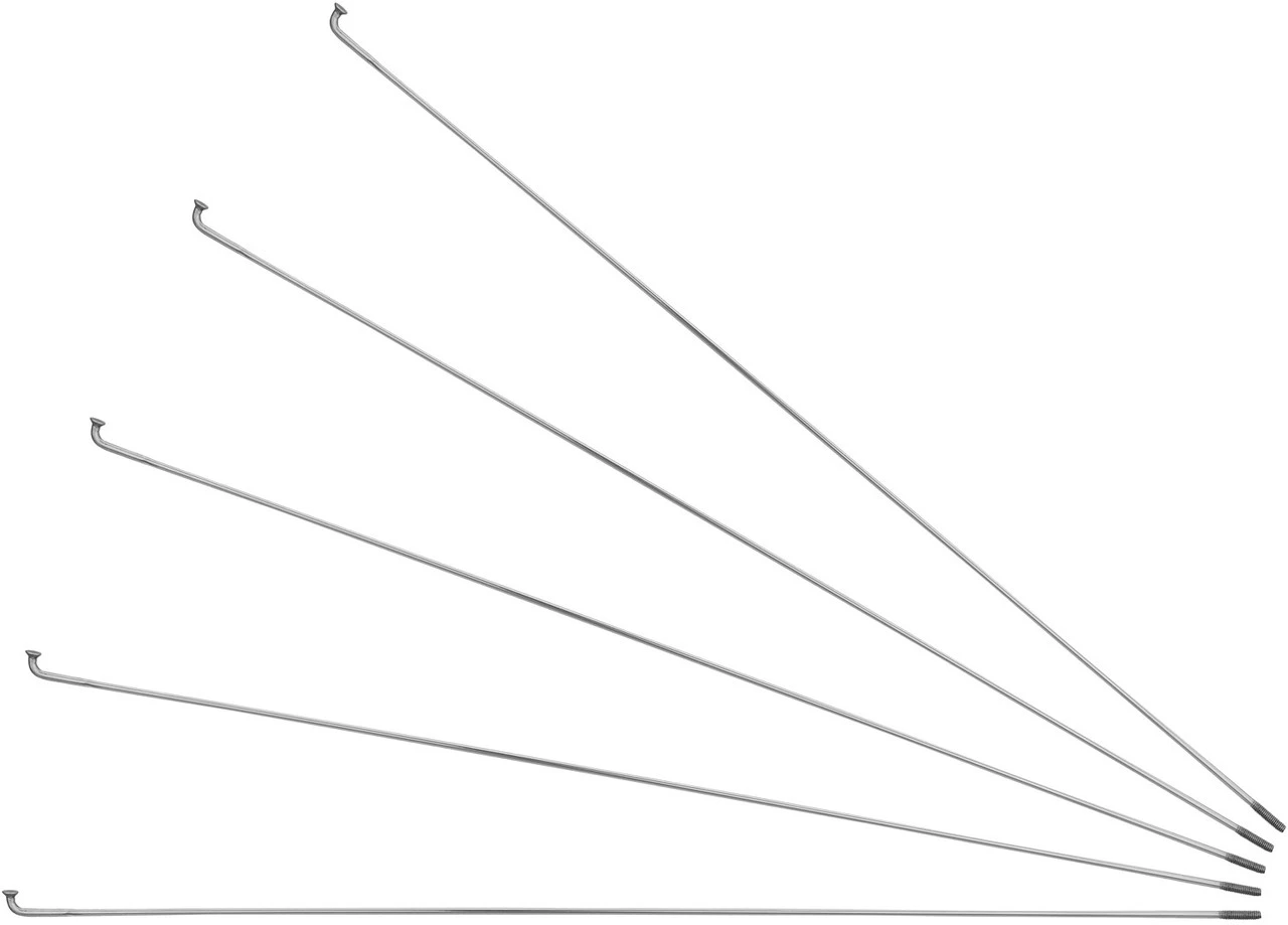 Die kurze 2 mm Sektion der Sapim D-Light J-Bend Speiche – hier verkauft im 5er Pack – verringert das Gewicht, vor allem auf der Seite mit Gewinde. Der 2 mm starke Abschnitt beginnt schon am Anfang des Gewindes. Daher wird die Rotationsmasse am Speichenende stark reduziert. Daraus resultieren Vorteile, was Beschleunigung und Bremseigenschaften des Laufrads angeht.