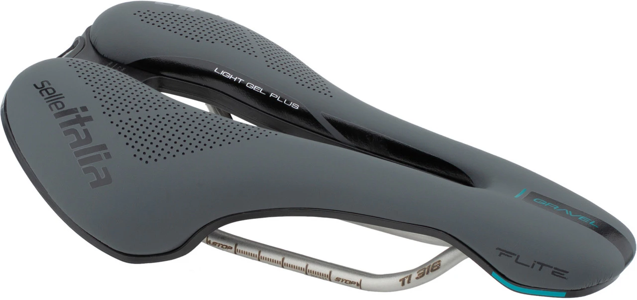 Der Flite Boost mit Titanstreben ist ein Gravel-Rennsattel von Selle Italia und verfügt über eine Superflow-Aussparung zur Druckentlastung.