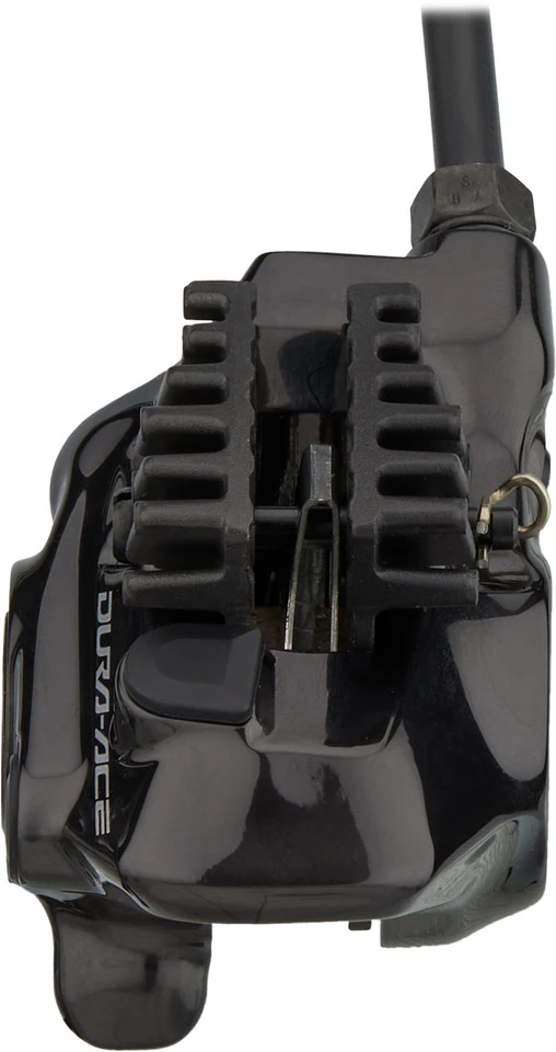 Der Dura-Ace Bremssattel BR-R9270 wurde einteilig in Mono-Body-Bauweise konstruiert. Das spart gegenüber der Ultegra-Variante hinten wie vorne über 20 Gramm Gewicht und erhöht die Steifigkeit zusätzlich. Die Bremsbeläge haben mehr Freiraum als beim Vorgängermodell, wodurch ein Schleifen der Bremsscheibe vermieden und die Geräuschentwicklung reduziert wird. Die Bremsleistung der zwei Kunststoffkolben ist auf den Wettkampfeinsatz abgestimmt. Außerdem punktet der BR-R9270 dank One-Way-Bleeding-Technologie mit einem einfachen Entlüftungsvorgang.