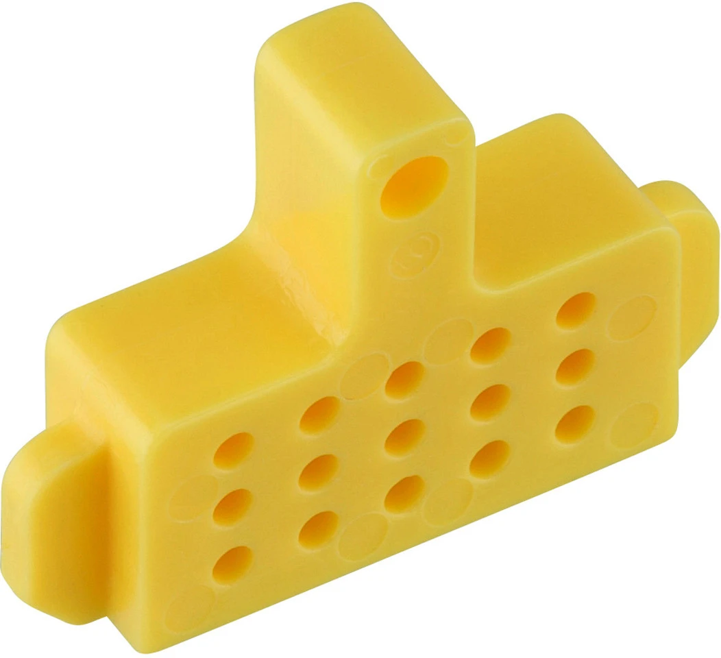 Das Shimano Entlüftungs-Distanzstück (gelb) mit 15 Löchern ist kompatibel mit 2-Kolben-Bremssätteln der Serien XTR, XT, SLX und Alfine.