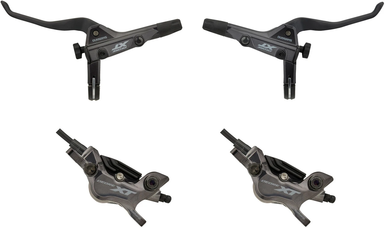 Das Shimano XT BR-M8120 Scheibenbremsen-Set mit den 3-Finger-Bremshebeln BL-T8100