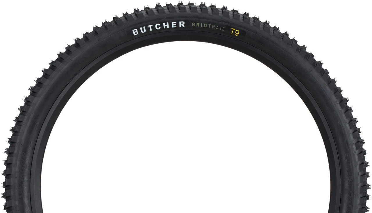 Der Butcher Grid Trail T9 von Specialized ist ein 29″ Faltreifen für aggressives Trailriding auf schwierigen Untergründen, die ein Maximum an Traktion und sehr guten Pannenschutz erfordern. Er basiert auf dem innovativen GRIPTON® T9-Compound, das auf totale Dämpfung und somit perfekte Bodenhaftung ausgelegt wurde. Das Profil des Reifens weist breite Schulterstollen mit nach innen verschobenen Kanten und versetzt angeordnete Mittelstollen auf, was für bessere Lastunterstützung und reibungslose Übergänge beim Kurvenfahren sorgt. Hinzu kommt die Grid Trail Karkasse mit ihrem Wulst-zu-Wust-Schutz für zuverlässige Durchstichresistenz. Dank 2Bliss-Ready-Casing kann der Butcher natürlich auch schlauchlos gefahren werden.