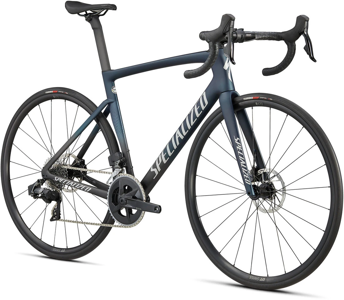 Spezifikationen:Einsatzbereich:RoadLaufradgröße:28″Größen:44 cm, 49 cm, 52 cm, 54 cm, 56 cm, 58 cm, 61 cmMaterial Rahmen:Carbon (10r)Material Gabel:CarbonKomponenten:Rahmen:Specialized Tarmac SL7, FACT™-Carbon, Disc Flat Mount, 12 x 142 mm SteckachseGabel:Specialized Tarmac SL7, FACT-Carbon, Disc Flat Mount, 366 mm Einbaulänge, 12 x 100 mm SteckachseVorbau:Specialized Tarmac integriert, 6°Lenker:Specialized Shallow Drop, Aluminium 6061, 70 x 125 mm, 31,8 mm KlemmungSattelstütze:Specialized 2021 S-Works Tarmac Carbon, FACT-Carbon, 20 mm SetbackSattel:Specialized Body Geometry Power CompKurbel:SRAM Rival, 35-48 Z, SRAM DUB BSA InnenlagerPedale:ohneBremsen:SRAM Rival, hydraulische ScheibenbremseSchalt-/Bremshebel:SRAM Rival eTap AXSSchaltwerk:SRAM Rival eTap AXS, 12-fachUmwerfer:SRAM Rival eTap AXS, AnlötKassette:SRAM Rival XG-1250, 12-fach, 10-36 ZKette:SRAM Rival, 12-fachLaufräder:DT Swiss R470, 20 mm Maulweite, Tubeless Ready, 24 Loch + Specialized Disc Center Lock Steckachsnaben, vollständig gedichtet, Aluminium-Freilauf + DT Swiss Champion 14 G Edelstahl-Speichen + DT Swiss MessingnippelReifen:Specialized Turbo Pro Faltreifen, 60 tpi, BlackBelt Pannenschutz, 700 x 26 mmFreigaben:Gewichtsbeschränkung:109 kg (Fahrer + Gepäck)Bremsscheibengröße max.:160 mmReifengröße max.:32-622 (700x32C)Kettenblattanzahl:2-fachFeatures:entwickelt auf Grundlage des Venge mit Hilfe der FreeFoil Shape Library, Isotopen-FEA-Analyse, Windkanal etc. für beste Verbindung aus Aerodynamik und Leichtgewichtentwickelt unter Berücksichtigung von Feedback von Profifahrern der Teams SD Worx, Deceuninck-Quick Step und Bora-Hansgrohekomfortabel auch auf langen Fahrten bei perfektem Handling und rennsportlicher Schnelligkeiteinzigartiger Layup-Plan für jede Rahmengröße mit unterschiedlichen Anordnungen, Ausrichtungen, Materialmengen in bestimmten Bereicheneinfache Integration für ein sauberes und vor allem schnelles CockpitSupacaz Super Sticky Kush LenkerbandSchläuche mit 48 mm SV-VentilTechnologien:FACT™