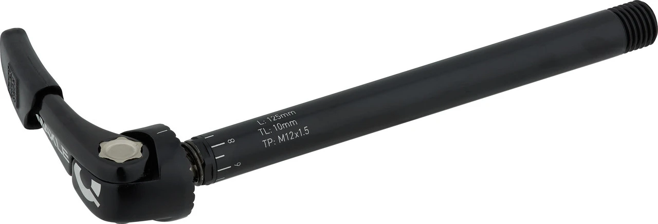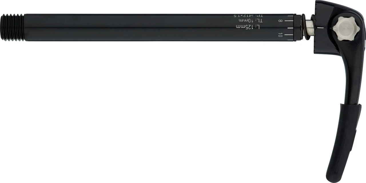 Spezifikationen:Einbaubreite:VR: 100 mmAchsdurchmesser:12 mmTyp:Steckachse mit SchnellspannhebelFeatures:hohe Klemmkraftwerkzeugfreie MontageAusführungen:12 x 100 mm, 1,5 mm, 137 mm: