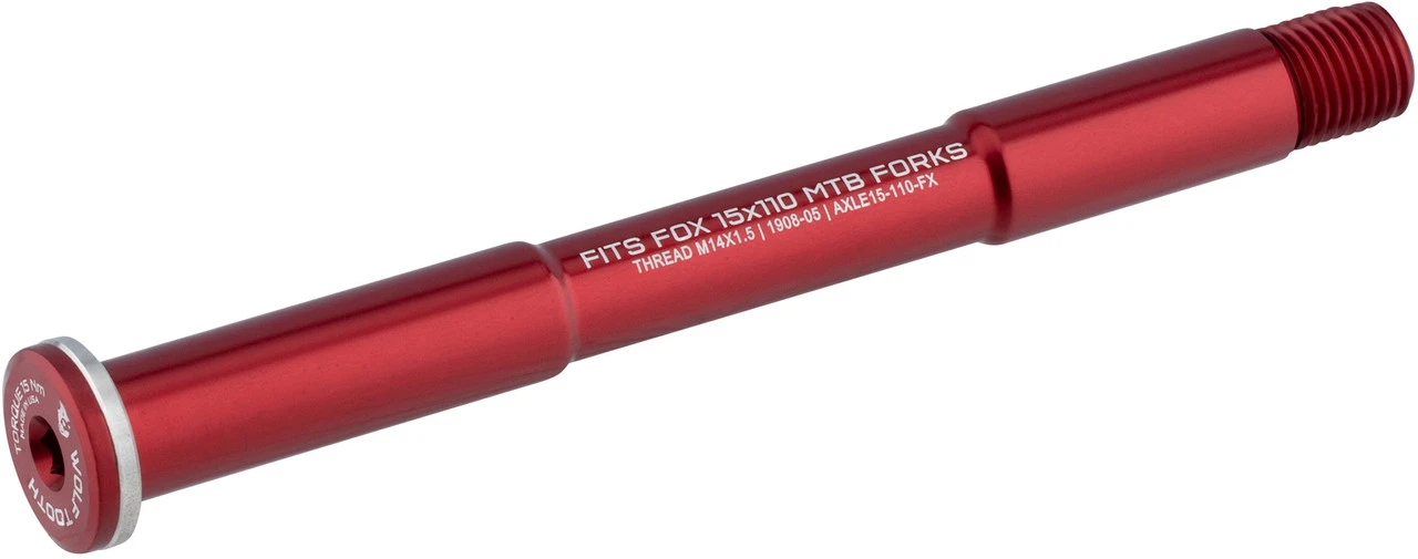 Spezifikationen:Einbaubreite:VR: 110 mmAchsdurchmesser:15 mmTechnische Daten:Verwendung:VR: 15 x 110 mmTyp:SteckachseMaterial Achse:Aluminium (7075-T6)Achslänge:155 mmNenndurchmesser:M14Gewindesteigung:1,5Gewindelänge:15 mmKompatibilität:Fox Racing Shox 15 mm Federgabeln (Boost)Features:ähnlich der Fox Kabolt Achse, aber mehr Farboptionen und mit Wolf Tooth Brandingmit plattierter Unterlegscheibe aus Stahlfür 6 mm InnensechskantAnzugsmoment 12 – 15 NmMade in the USA
