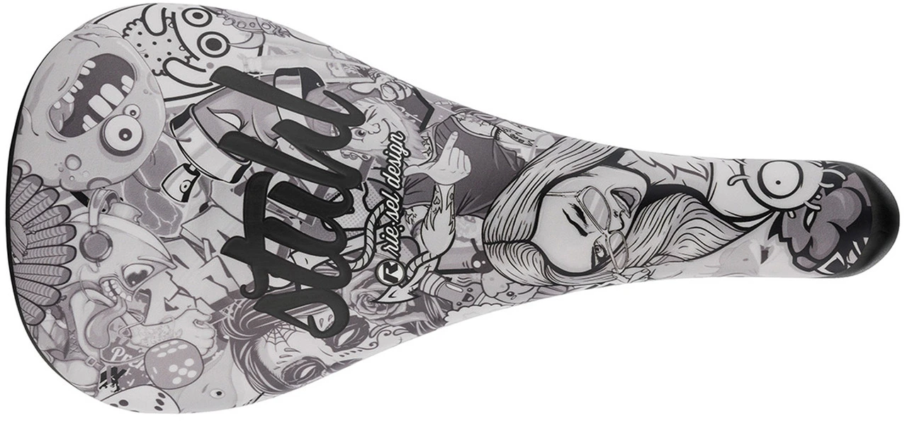 Bontrager / Trek (ohne spezielle Klemmbacken)Crank Brothers Kronologo (Vario-Stütze)Easton CT2M2RacerMoots Straight Laced and Laid BackRace Face XYUSE Alien (ohne spezielle Klemmbacken)Features:original rie:sel Designgeeignet für Straße und MTBeinzigartiges DesignVollcarbon-Sattelflache breite Naseflexible SattelschaleHerstellernummern:stickerbomb:RS-S009stickerbomb-ultra black:RS-S010girl:RS-S011stealth:RS-S012green:RS-S013red:RS-S014blue:RS-S015orange:RS-S016purple:RS-S017pink:RS-S018Lieferumfang:1 x Sattel rie:sel stu:hl