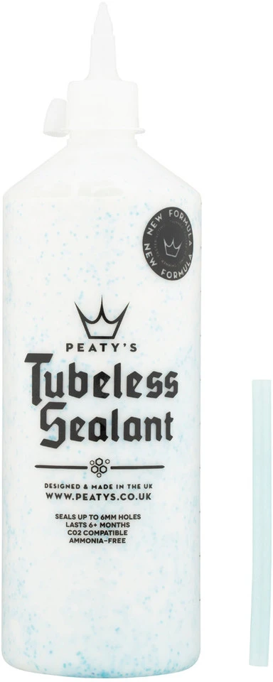 Das Tubeless Sealant Reifendichtmittel von Peaty’s ist ein biologisch abbaubares sowie Ammoniak-freies, unschädliches Dichtmittel für Tubeless-Reifen auf Latex-Basis. Es wurde vom Downhill-Weltmeister Steve Peat entwickelt, um unter härtesten Bedingungen zu bestehen. Das leichte Gemisch gewährleistet ein effektives Abdichten und mindert dank dem enthaltenen Korrosionsschutz gleichzeitig den Verschleiß von Reifen und Felge. Die biologisch abbaubaren Nano-Plättchen sorgen zudem für eine Abdichtung von größeren Löchern und Rissen. Peaty’s Tubeless Sealant hält ca. sechs bis neun Monate im Reifen ohne zu verklumpen und kann bei Bedarf ohne weiteres nachgefüllt werden.