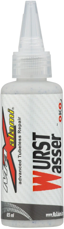 Das Wurstwasser von MaXalami ist ein vollsynthetisches Reifendichtmittel und sorgt für absolut dichte Tubeless-Reifen, ohne dass es sich zersetzt oder verklumpt. Auch Reifeneinlagen sind kein Problem, das Reifendichtmittel legt sich einfach in den Reifen und verschließt Beschädigungen in kürzester Zeit.